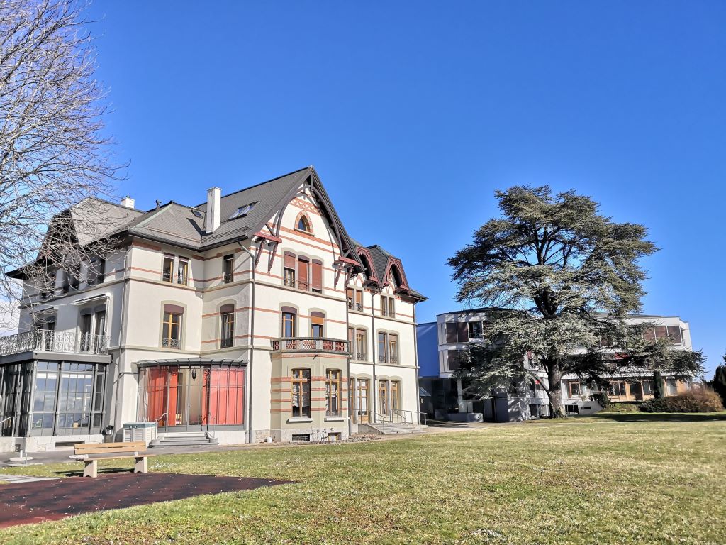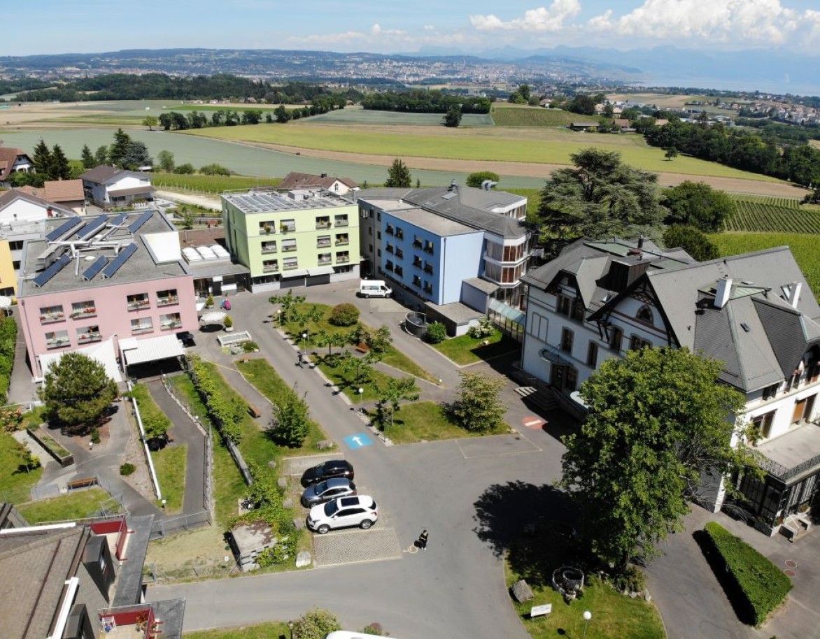 Surplombant le Lac Léman, face au Mont-Blanc, le Hameau compte plusieurs bâtiments avec 68 chambres de gériatrie et 40 de psychogériatrie.