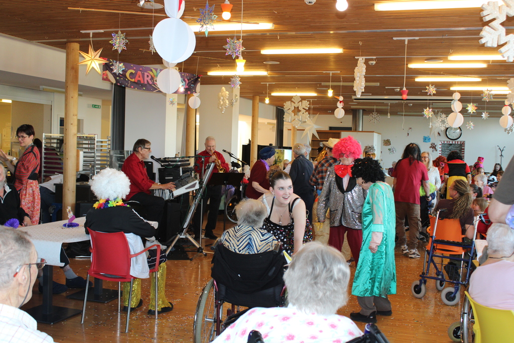 Des déguisements sont mis à disposition des résident·e·s qui le souhaitent, et la magie opère. Comme l'an précédent, de nombreux résidents et membres du personnel se sont prêtés au jeu, ont dansé déguisés au son de l'orchestre engagé pour l'occasion et ont passé par des moments de franche rigolade.