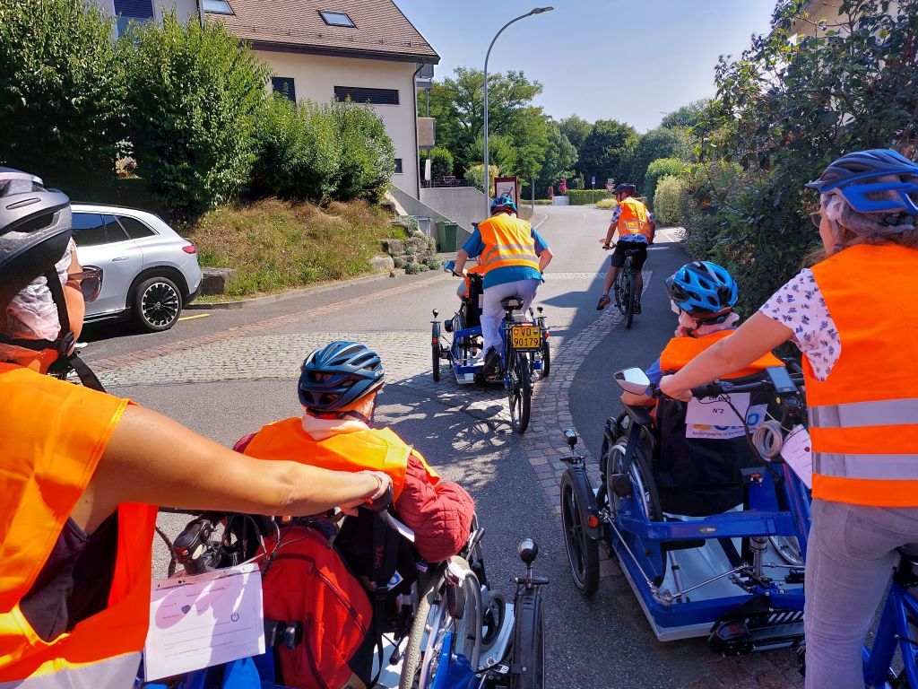 Fin août, plus de 76 résident·e·s et bénéficiaires ont eu l'occasion de « rouler » à vélo pendant une heure sur un parcours sécurisé de 6 km, encadré par des vélos ouvrant et fermant le chemin, à Echichens et environs. Les départs et arrivées étaient agrémentés de klaxons et de bannières, avec une foule de supporters enthousiastes.