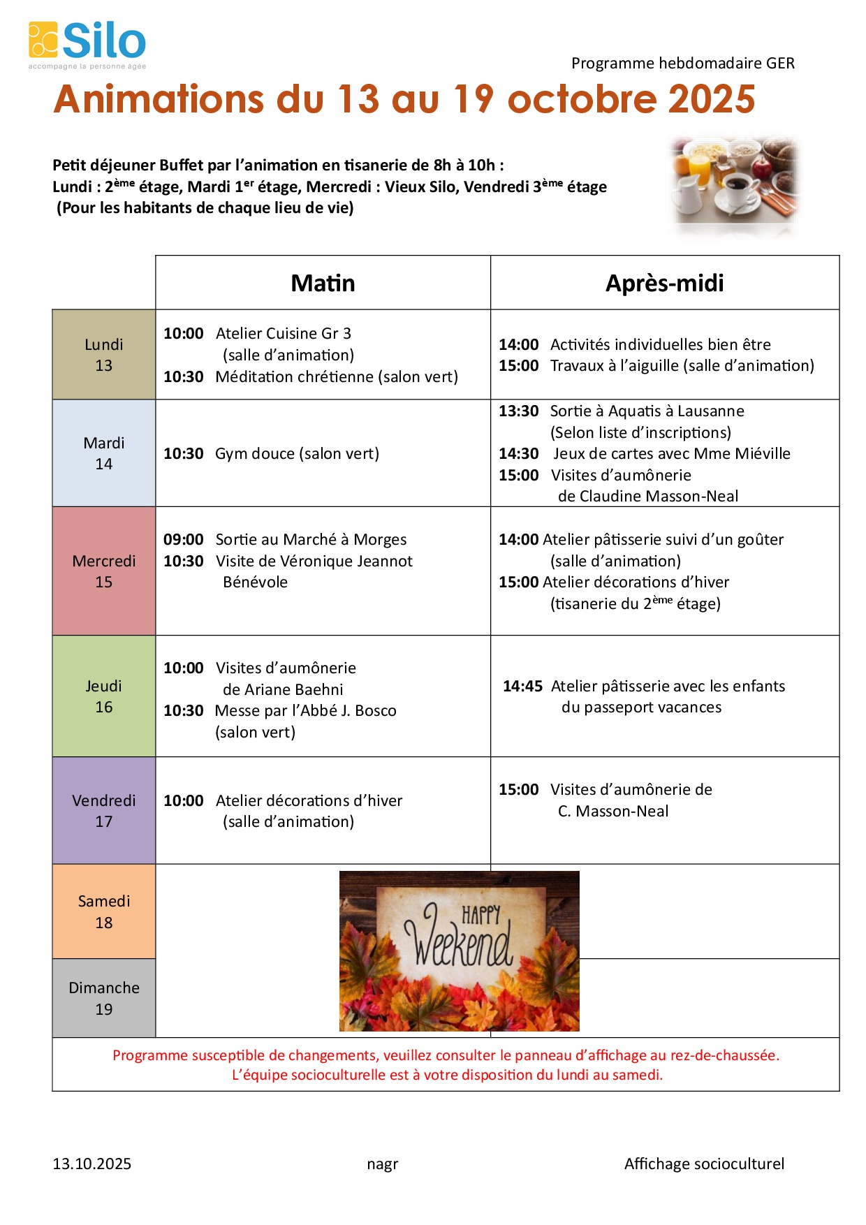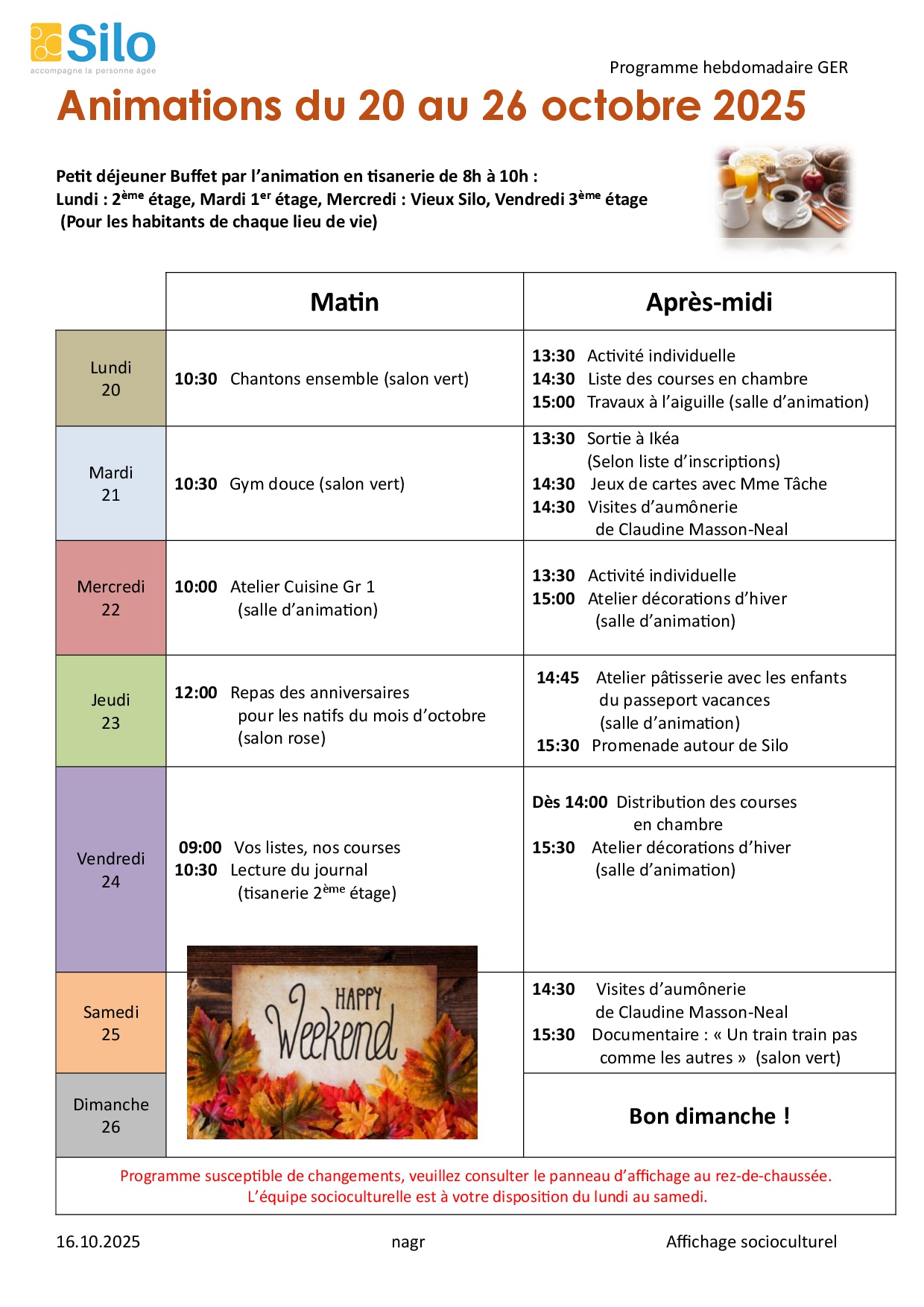 Programme d'animation Unité de Gériatrie (GER)