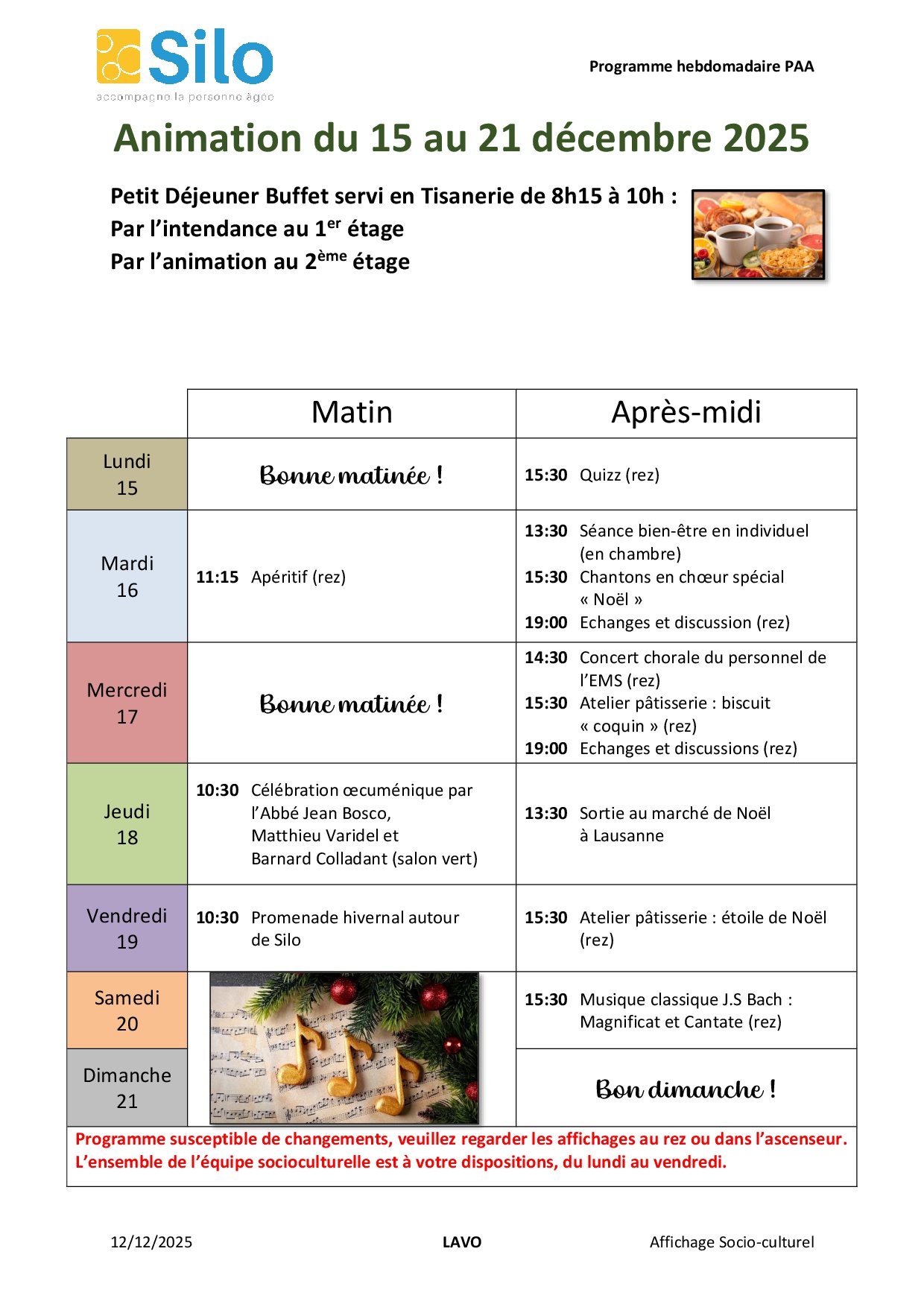 Les visites sont les bienvenues à l'EMS et au SAMS Silo. Merci de toujours vous référer aux affichages en cours sur les deux sites pour vos visites ou contacter notre accueil pour vous renseigner.